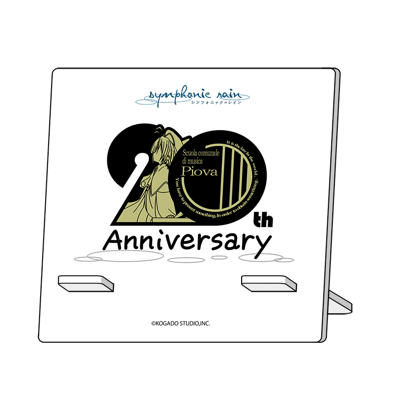 『シンフォニック=レイン』20周年ロゴを仕様したシンプルなスマホスタンドです!デスクの上にも飾りやすいサイズです。