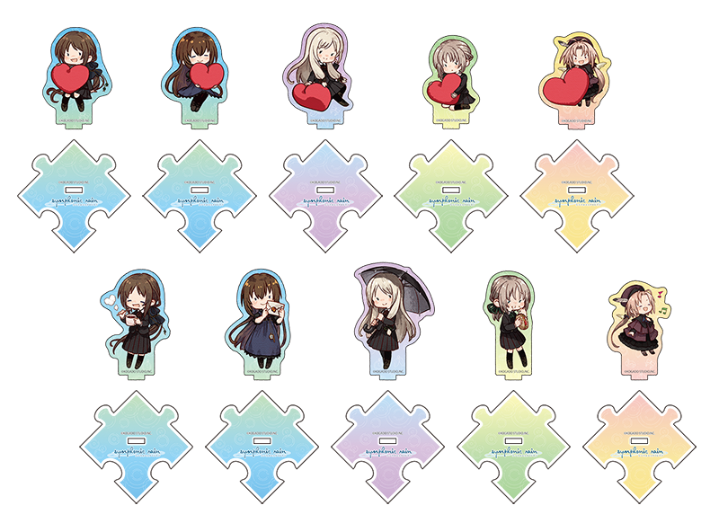 個性豊かなヒロインたちの可愛い表情がぎゅっと詰まったアクリルスタンドです。新しく、ハートを持った描き下ろしSDも!台座と台座を繋げることが出来ちゃいます。