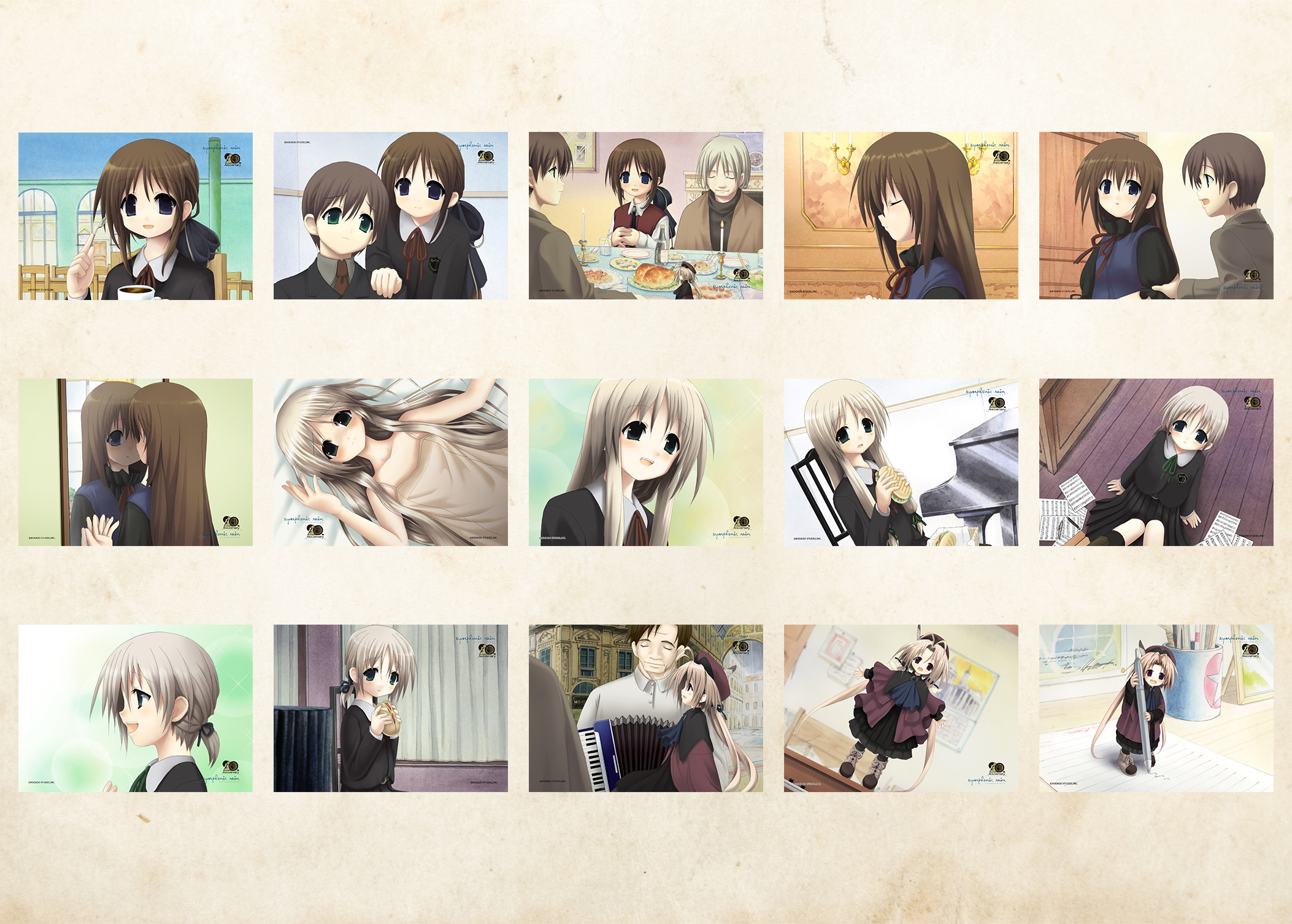 2004年3月、初めて皆様の耳に届いた優しい旋律、五線譜に刻まれた物語のことを、覚えているでしょうか? そう、シンフォニック=レインの初回盤がリリースされた、記念すべき日です。 この作品が多くの方々の記憶に残っているのは、魅力的なキャラクター、心温まるストーリー、そして儚くも美しい音楽が見事に調和し、唯一無二の世界を築くことができたから――だったのかもしれません。 シンフォニック=レインは皆様の熱い声援に支えられてきました。 20周年を迎え、未来へと続く音色をこれからも奏で続けていくことを、ここにお約束します。